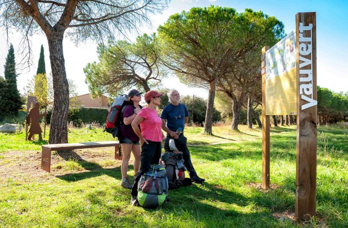 Nous vous proposons, au départ de la Gare de Vauvert, de rejoindre le GR653, le Chemin de Compostelle, dans un premier temps, en suivant les clous qui jalonnent au sol, le centre-ville.