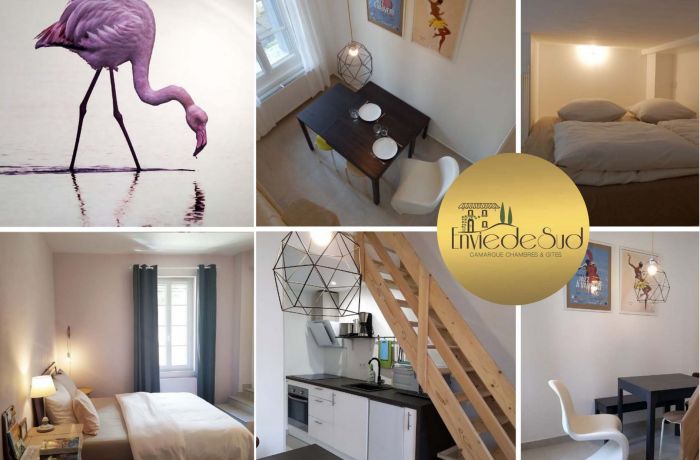 The cottage "Flamants roses" is located on the first floor of our charming winegrower's house "Envie de Sud" , in the heart of Vauvert. This bright furnished apartment, ideal for a couple, offers a relaxing setting, enhanced by a warm and attentive welcome. Discover emblematic places such as Arles, Nîmes, Montpellier, Aigues-Mortes, or even Espiguette beach , all accessible in less than an hour's drive.