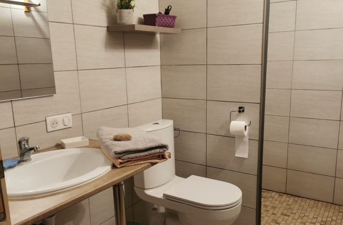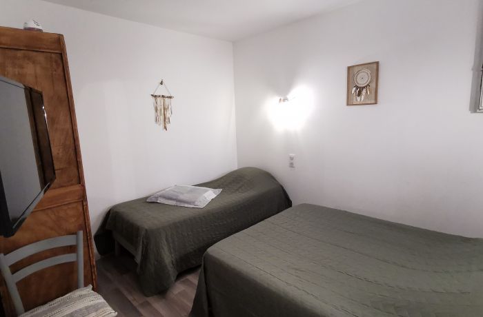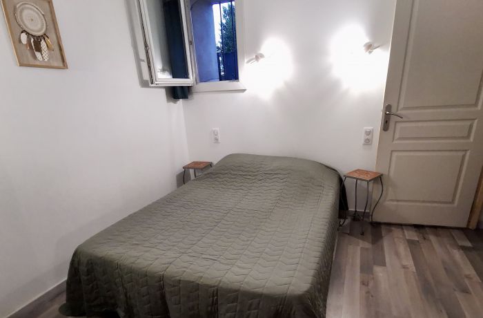 The gîte "Le Castellas" with a surface area of 34 m2 can accommodate 4 people . It is composed of a main room with a lounge area and a fitted kitchen, a bedroom with a 140 cm bed and a 90 cm bed, as well as a bathroom with a walk-in shower and raised toilet. Access to the cottage is simplified for strollers and wheelchairs.