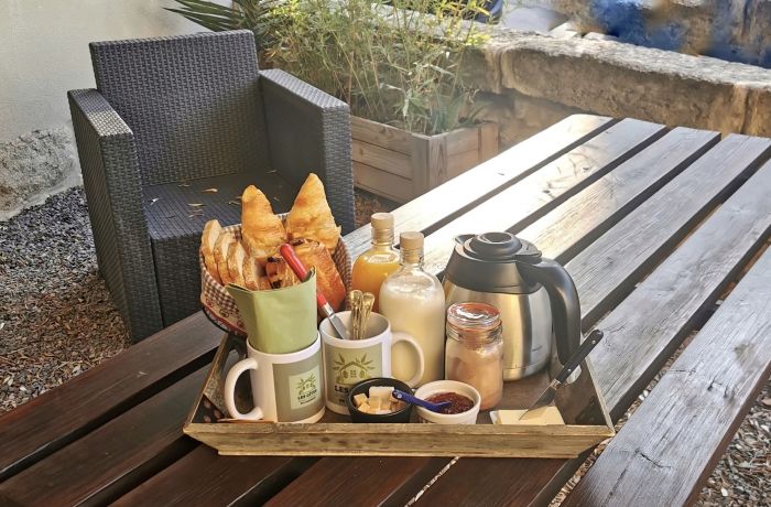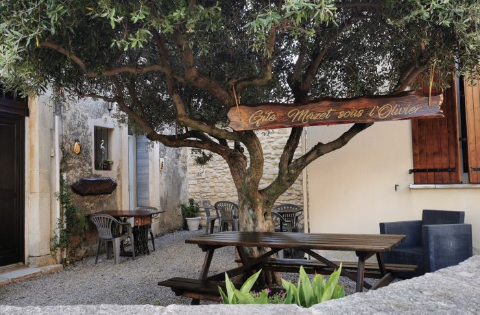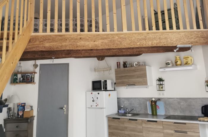 The gîte "Le Mazet sous l'Olivier" with a surface area of 24 m2 can accommodate from 2 to 4 people. It consists of a single room including a lounge area and a fully equipped kitchen, a bathroom with a walk-in shower and a mezzanine with a 140 cm bed. A small courtyard with a terrace is also at your disposal to enjoy the outdoors.