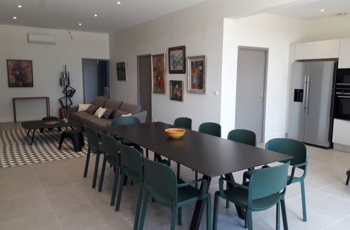 - Equipements : plancha, piscine chauffée, terrain clos, terrasse, salon de jardin, parking privé