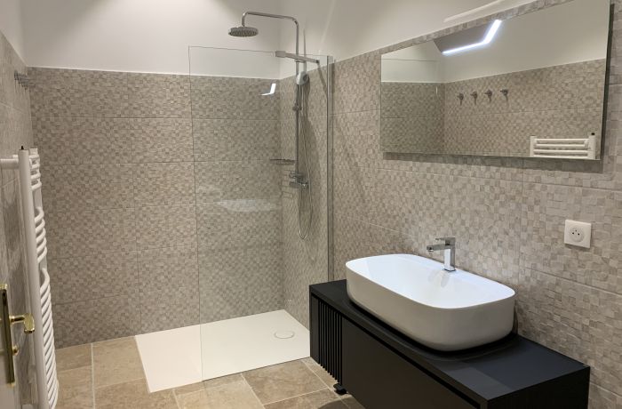 - Le premier gîte offre un séjour lumineux avec salle à manger et cuisine équipée, 4 chambres (dont 2 avec salle de bain privative), et une salle de bain commune avec baignoire King Size.