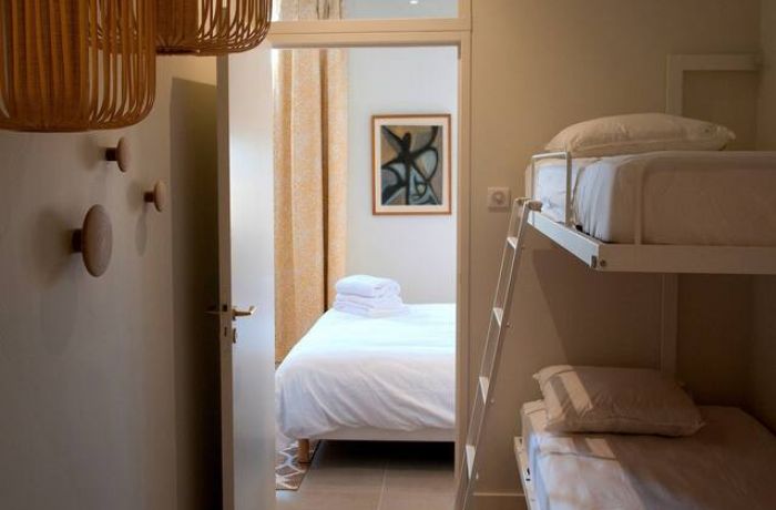 - 1 chambre pour enfants avec lits superposés et sanitaires privatifs,