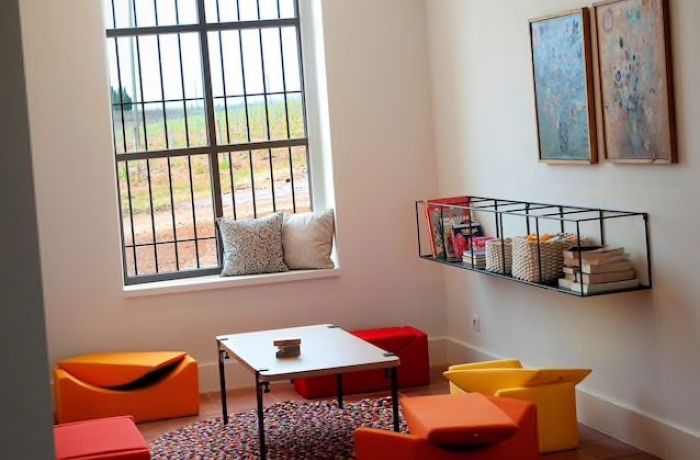 - Une salle à manger, un salon avec cheminée, un coin lecture et une salle de jeux pour enfants,