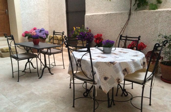 Pour profiter de l'extérieur, une cour intérieure de 51 m2, véritable havre de paix, avec plancha, salon de jardin, chaises longues, idéale pour les repas en plein air ou comme espace fumeur.
