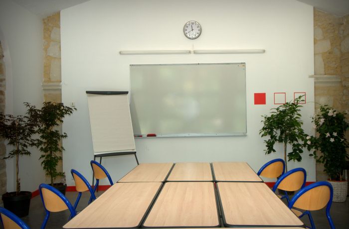 Pour vos événements professionnels ou familiaux, nos 6 salles de réunions peuvent accueillir jusqu'à 200 personnes. Elles sont équipées de tables, chaises, tableau blanc, paperboard, vidéoprojecteur, sono, micro. Sur réservation, nous vous offrons également la possibilité de bénéficier d'un service de restauration sur place. Pour obtenir d'avantage d'informations sur les tarifs de location des salles, fixés à 32€ de l'heure ou inclus dans le prix de la pension complète, n'hésitez pas à nous contacter.