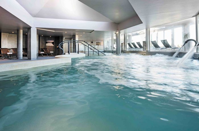 - Du centre de Thalassothérapie et spa (Espace Marin), comprenant la piscine intérieure d'eau de mer chauffée, les bains bouillonnants et les soins.